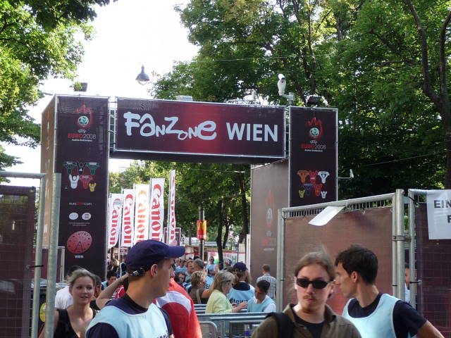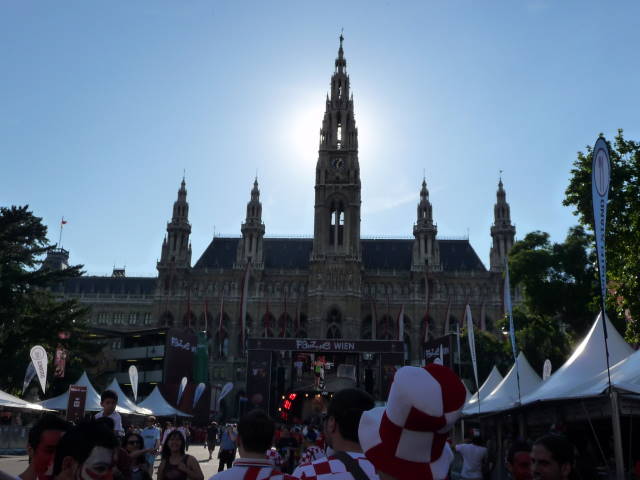 ここは市庁舎前広場。EURO2008のファンゾーン(試合が行われるスタジアムの入場チケットを持っていないファンのための応援会場)になっていました。