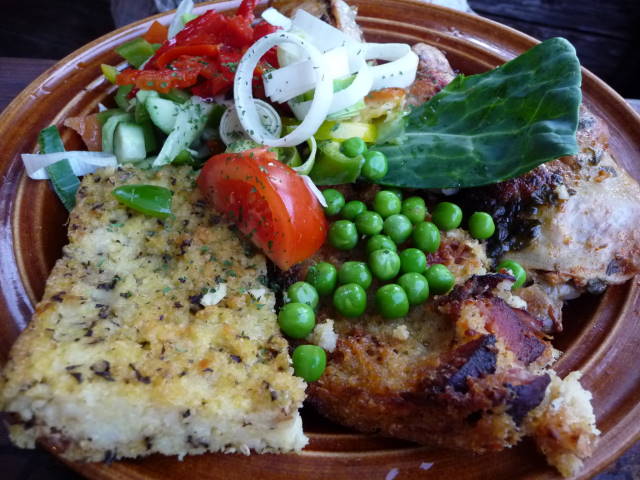 左がうさぎ(145CZK)、右が鶏肉(130CZK)のソテー。ビールが1杯30CZK。