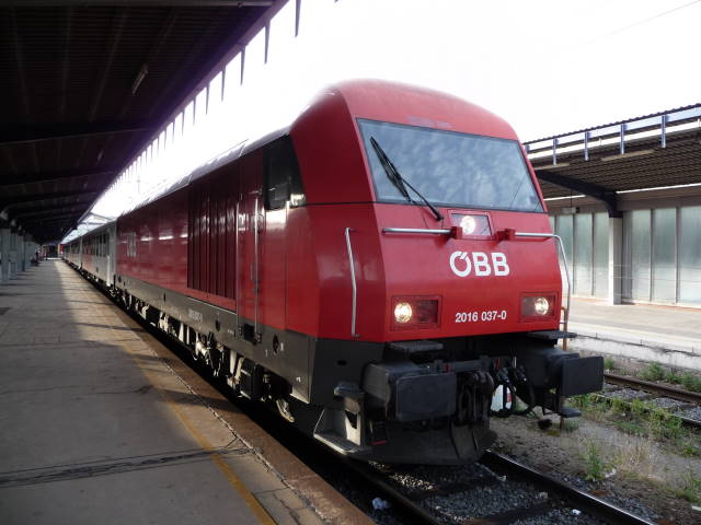 16:30発の列車は定刻に出発。Wien Hutteldorf駅とWien Sudbahnhof駅で2度乗り換え、Bratislava hl.st.(ブラチスラヴァ中央駅)着20:37。