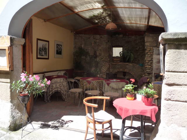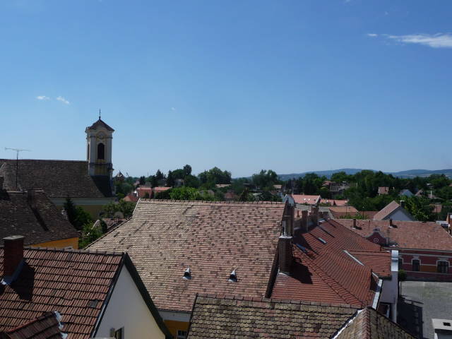 丘からは町が一望できます。右は教会近くにあったお洒落なカフェ。