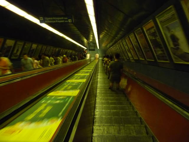 これはブダペストの地下鉄のエスカレーターですが、スピードは日本の倍くらい。