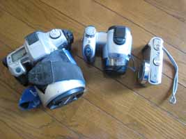 ←スチール一眼レフとコニカミノルタ製デジカメとの大きさ比較。 |