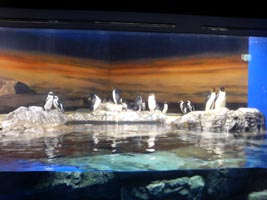 右:ペンギンのコーナー。ケープペンギンやイワトビペンギンなど、4種類の