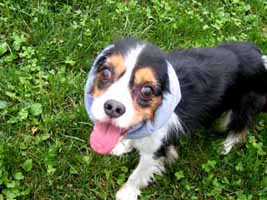 長い耳が汚れないようにカミさんが作ったヘアバンドをしている姿。