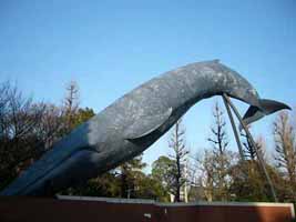 右)屋外展示。全長30m、体重150tのシロナガスクジラが、