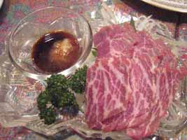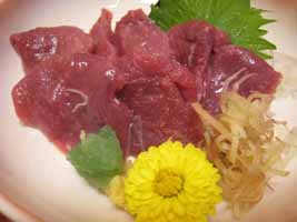 右)霜降馬刺。今まで食べた馬刺の中でダントツのNo.1。
