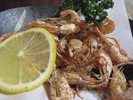 川海老の唐揚げとダシ巻きたまご。どちらも500円。