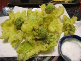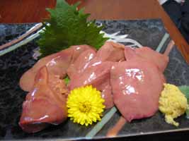 レバ刺しと、ふきのとうの天ぷら。