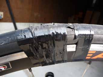 左:テープを巻いた状態。乗り心地は最悪。これで110km以上も走りました。