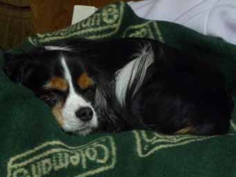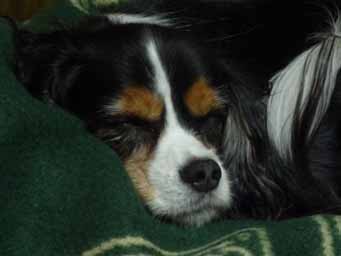 ドッグランで遊びまくり、ヘトヘトになって寝ている愛犬アラン♂君。