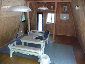 泊まったのは「カントリーハウス」という最も大きなバンガロー。1階20畳、2階10畳、最大収容人数は10人。