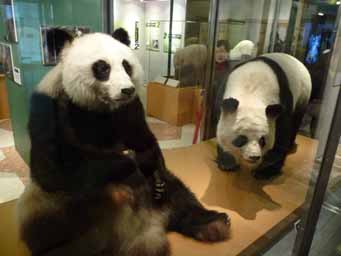 日本館1Fの中央ホールに、期間限定で上野動物園にいたジャイアントパンダの剥製が展示されていました。