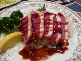 霜降馬刺と、新メニュー鴨の炙り焼き。