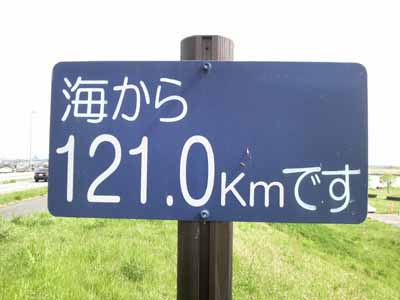 利根川CRを走っていると、「海から○○○km」という標識が250m〜500m毎に立っています。