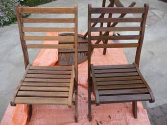 午後はベランダバーベキュー時にも使う、木製の椅子とテーブルをキシラデコールでリペイント。