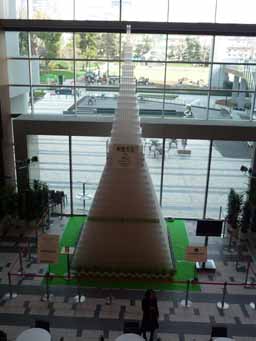 爽健美茶のプラントボトル日本発売記念イベントとして29424本のボトルを使って作られた、高さ8.43mのタワー。