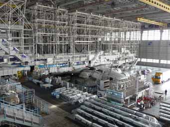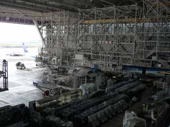 旅客機の整備工場の見学です(要予約)。まずはビデオとスライドを使った講習があり、その後に工場へ移動します。