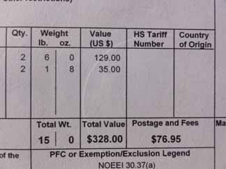 椅子1脚129ドル、エクステンションが1脚分で35ドル、送料は伝票には76.95ドルと書かれてますが、実際には85ドル(手数料と関税?)請求されました。