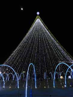 ツリーの高さは15mくらいかな? ツリーのバックに月がきれいに出てました。