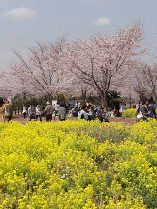 菜の花も桜も満開。桜と飛行機の2ショットも撮れましたが、残念ながら曇っていたので写真が暗いです。(涙)
