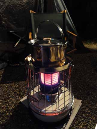 次回に乞ご期待! そして今回の夕食は、ストーブに鍋を乗せてのしゃぶしゃぶ。
