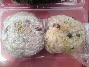 赤飯のおにぎりの中にあんこが入ってます! σ(^^)は赤飯は大好きですが、甘い物は苦手。