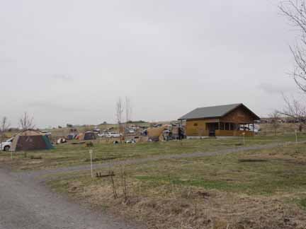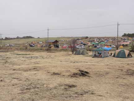 手前のテントとタープが3張りしかないのが「バラギ高原キャンプ場」で、