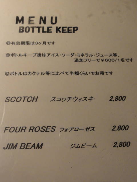 輸入酒に馬鹿高い関税がかけられていた当時、この店で最も安かったボトルは、ジンビームの6800円。