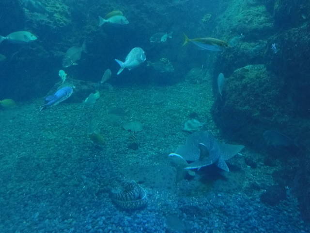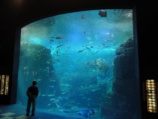 大水槽。美ら海水族館や海遊館と比べると・・・。