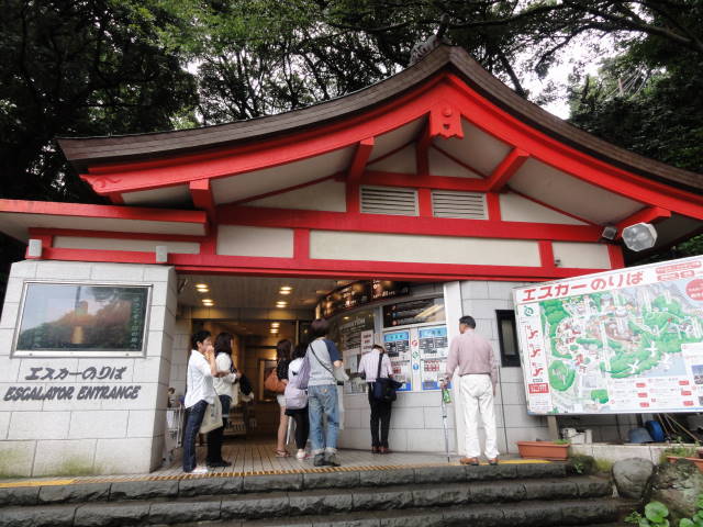エスカー乗り場は、鳥居階段手前を左へ進んですぐ。下りはない上りだけのエスカレーターで、全区間の料金は350円。