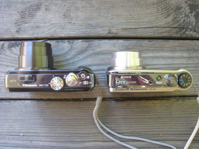 左がDMC-TZ30で、右がDSC-HX5。サイズは殆ど変わりません。