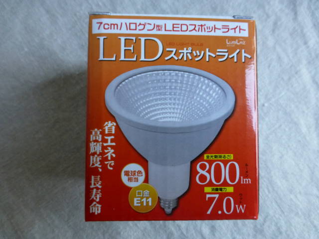 そこで試しに全光束800ルーメン、消費電力7WのLEDスポットライトを2つ購入、お値段は1つ1980円。