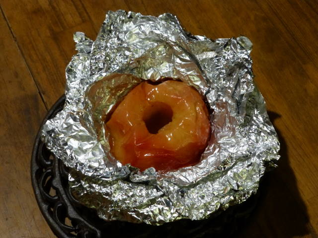カミさんは薪ストーブを使って、焼きリンゴを作りました。