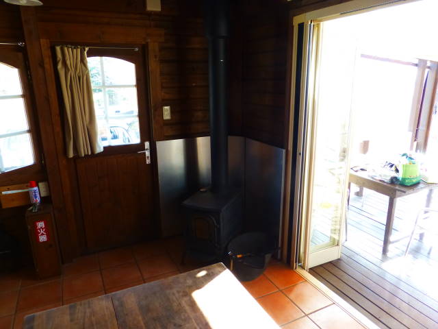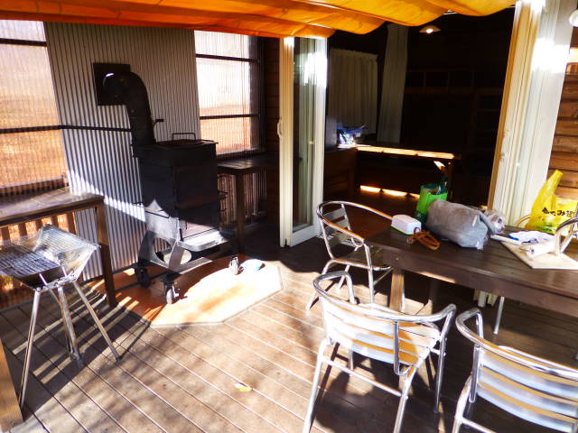 室内には薪ストーブ、デッキには調理用オーブンとバーベキュー用グリルを完備。