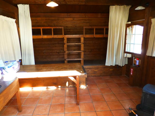 2人ずつ寝られる2段ベッドと、ベンチ兼用のベッド×1で、計5名まで宿泊可。