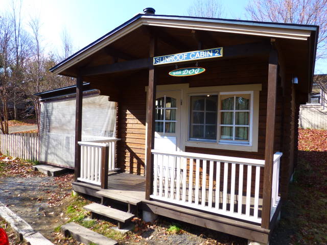 流石にキャンプは寒いし、クレア♀の誕生日とも重なったので、奮発してドッグラン付きのキャビンを予約。