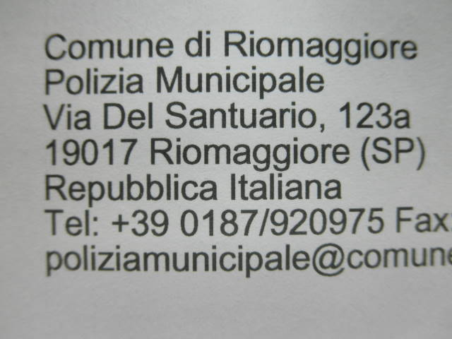 違反切符を送付してきた警察署の所在地をGoogleマップで調べたら、リオマッジョーレという片田舎の警察。