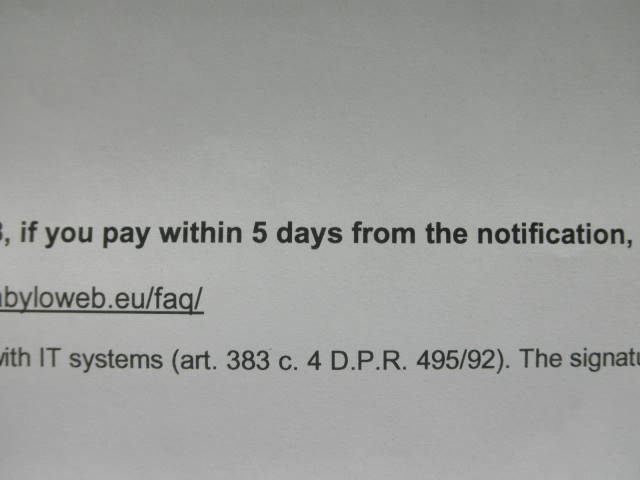 60日以内に支払えばEUR193、それを越えるとEUR362、通知が届いてから5日以内に払えばEUR142.6とあります。