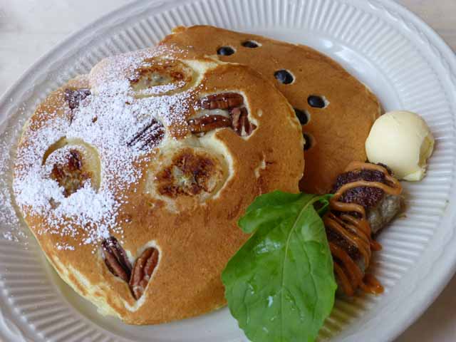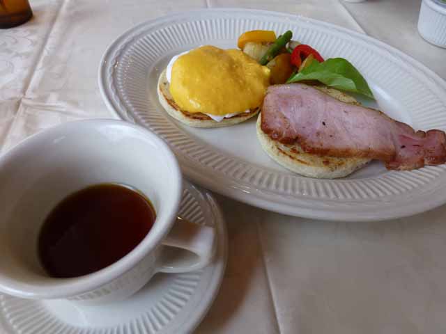 いつもと同じ、エッグベネディクトとパンケーキを注文。