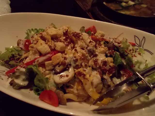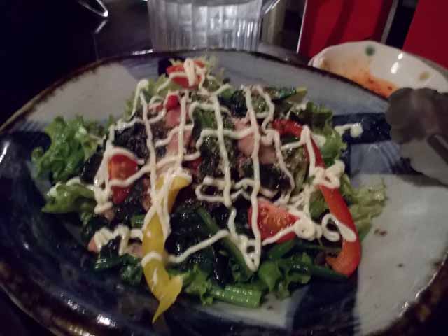 サラダを2皿食べてから、モツ煮、焼とん、西京焼き等々。