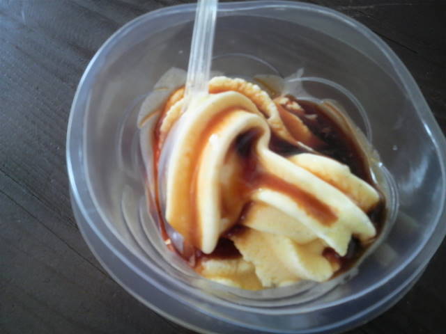 以前テレビで見た、醤油ソフトクリーム@270円を食べてみました。