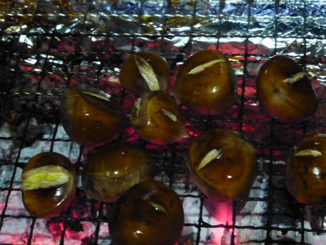 キャンプ場へ向かう途中で拾った、山栗も焼いてみました。