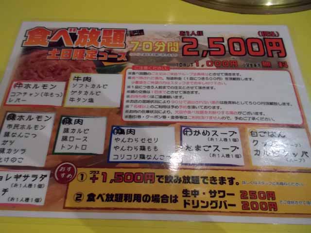 行ったのも前回と同じ店、同じく2500円の食べ放題コース。