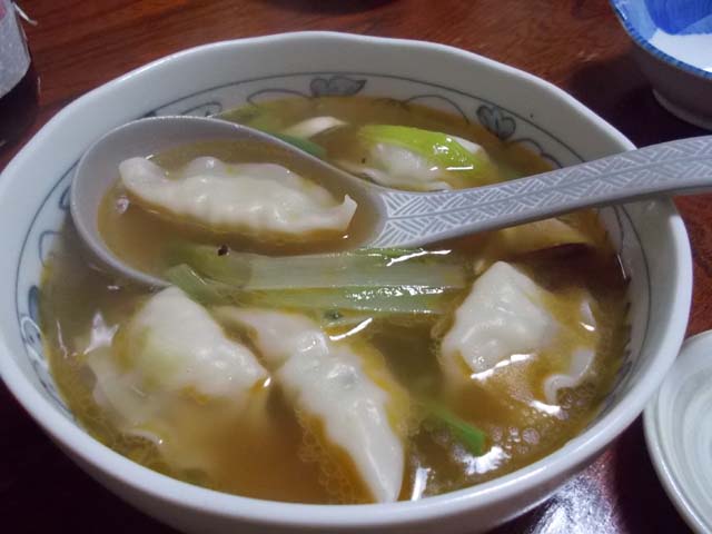 燻製と川海老の唐揚げ、刺身は太刀魚とかな頭と〆さばと帆立、スープが自慢の水餃子、〆は蕎麦。