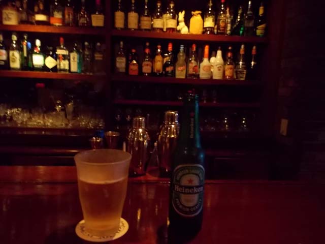 ビール(一番絞りの小ビン)とハイボール、マスターにも一杯おごって3000円。