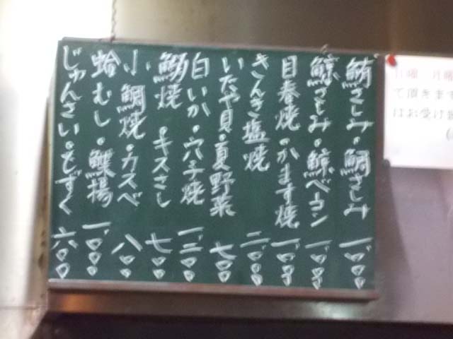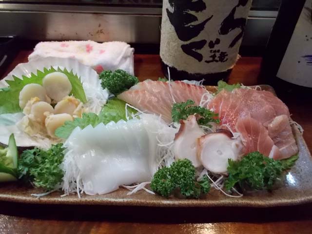 盛り合わせ(鮪・鯛・蛸・烏賊・帆立)と、蛤蒸しを頼んだけど、どちらも普通。