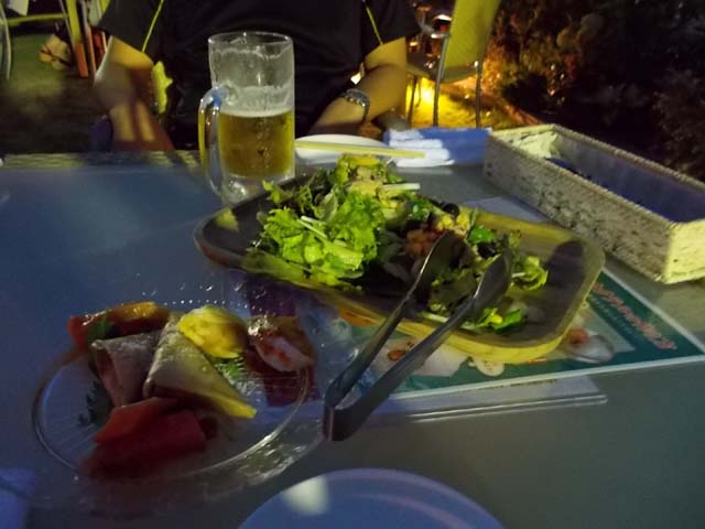 料理は、サラダ・前菜・アヒージョとバケット・メイン・パスタと完食しきれないほどの量で、味もそこそこ。