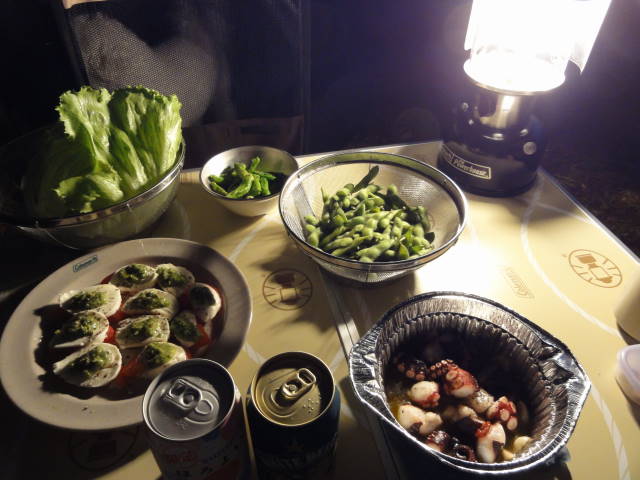 モッツァレラチーズとトマトのカプレーゼ、タコのアヒージョ、枝豆、チャプチェ等。