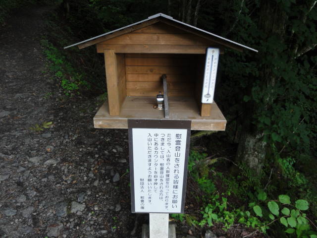 入口には杖や傘の他に、入山者数集計用のカウンターが設置されています。
