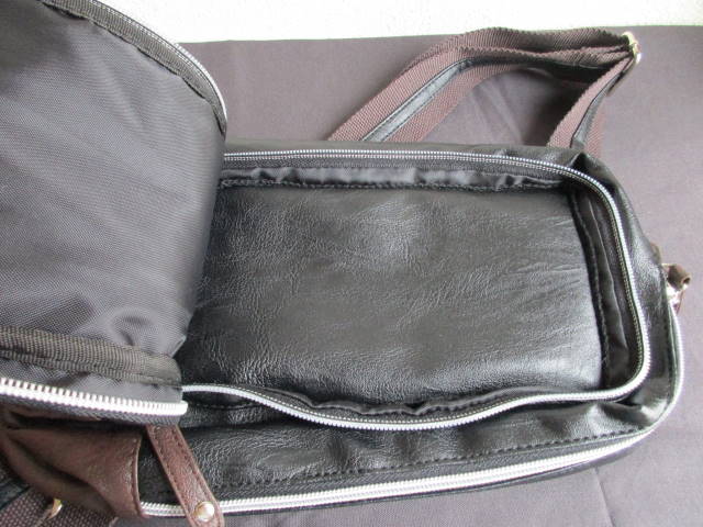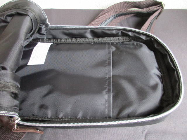 大きさは、28×15×9cm。3層構造になっていて、それぞれにジッパーが付いてます。